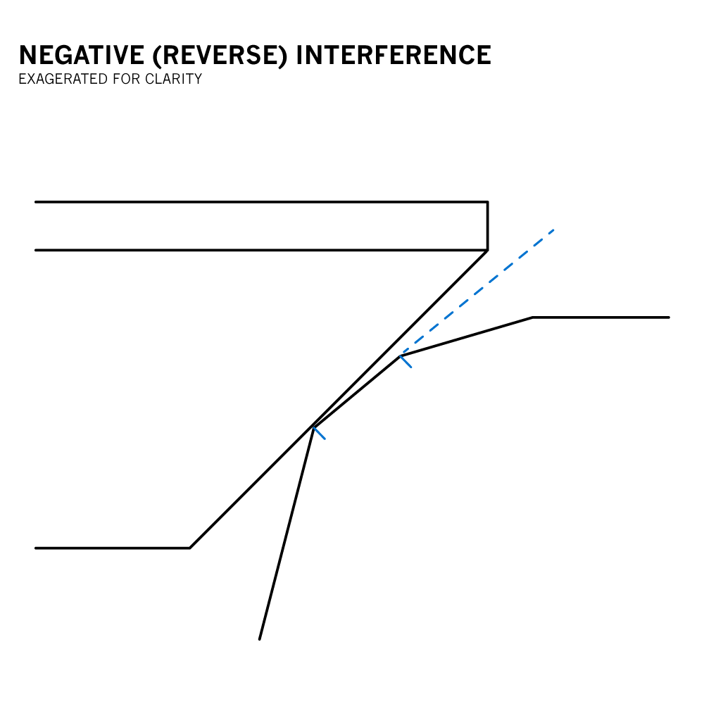 The first thing to understand about the interference fit between a valve and valve seat is its purpose: to prevent reverse interference. It's just that simple. If the valve face is a steeper angle than that of the valve seat you have reverse interference and this is not good. Reverse interference creates, obviously, the potential for combustion leakage.
