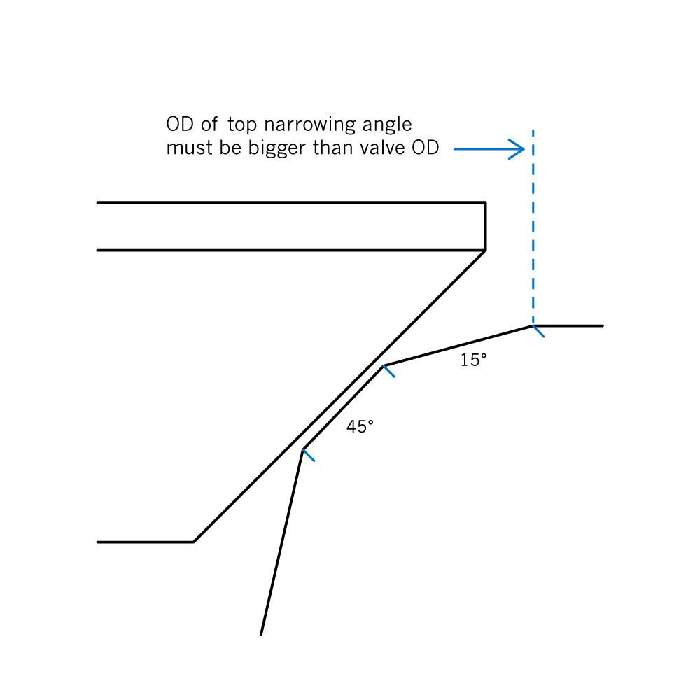 ANGLES Find the angles you need. To do a proper valve job you will need three angles : the contact surface and two "narrowing angles" immediately above and below the contact surface. Almost all valves are 45 degrees. If you don't have the OEM specifications for the narrowing angles, we recommend the standard 30° - 45° - 60° profile.